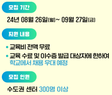 이제 학교가 AI로 교육하는 시대가 되었고, 선생님들과 학생에게 기기와 소프트웨어 관리 등을 지원해 주는 디지털 튜터라는 직업이 생겼습니다. 수요에 비해 공급이 부족한 관계로 정부에서 5개 권역 800명 이상 무료교육생을 양성한다고 하니 관심 있으신 분들은 빨리 신청하셔서 이득 보시기 바라요, 8.26일부터 신청이 시작되었으니 조기 마감될 수 있습니다.