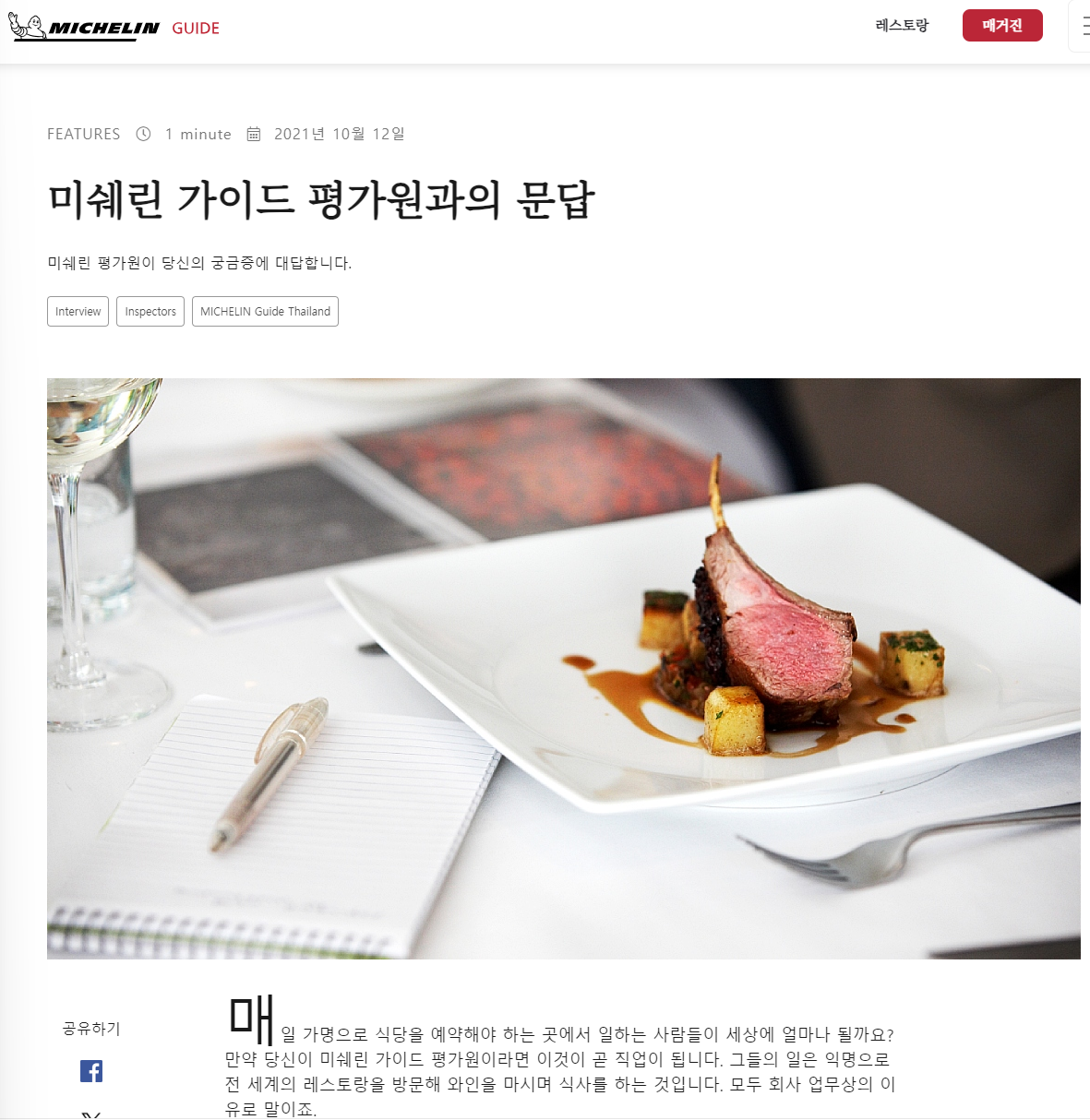 미슐랭 인스펙터 : 미슐랭 가이드 평가원은 어떻게 평가를 할까? 궁금하신 분은 아래 사이트에 글을 읽어보세요.