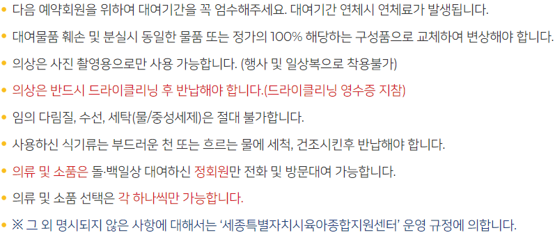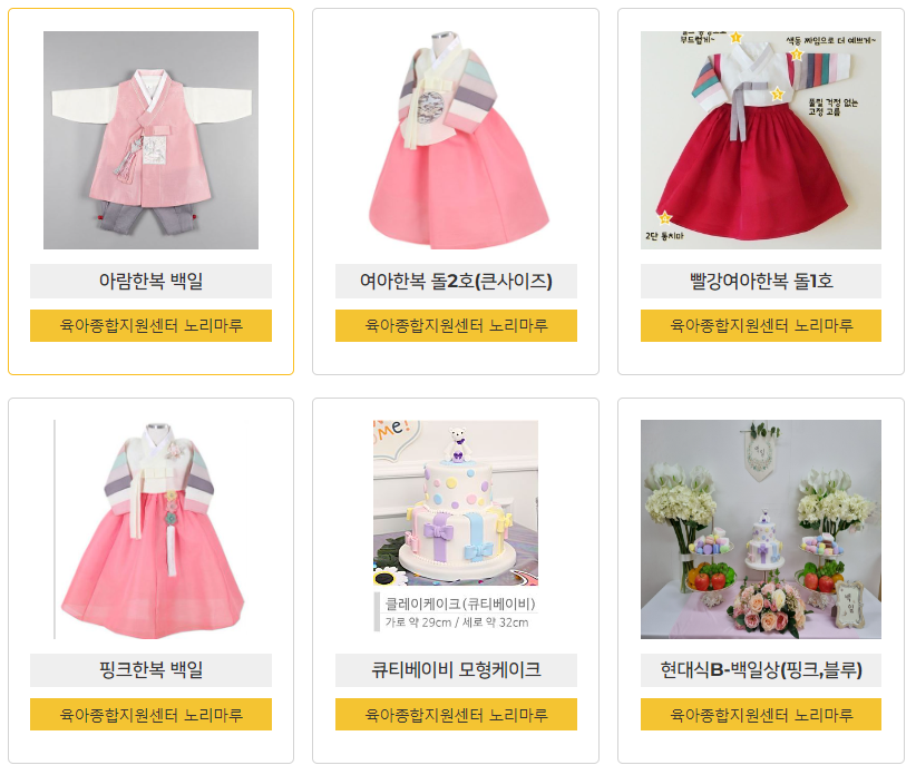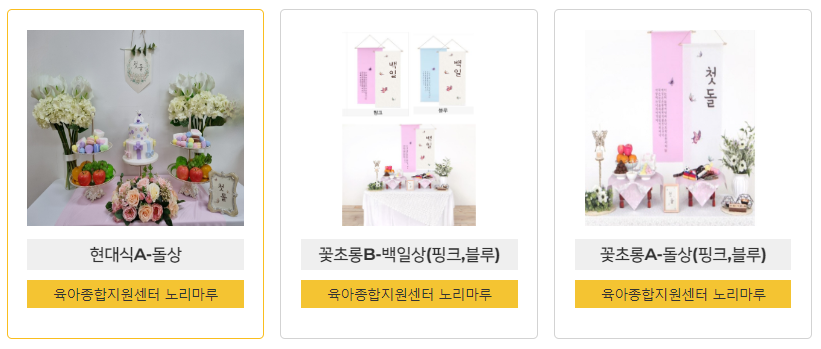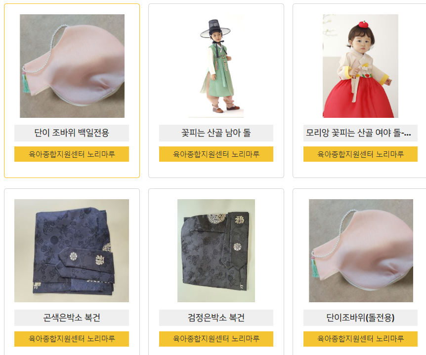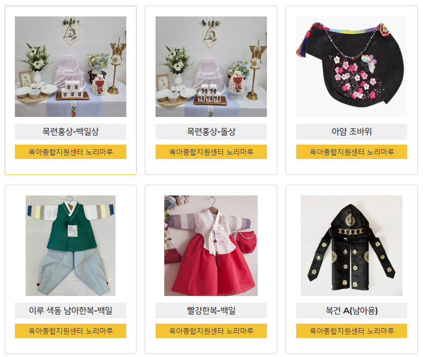 전국에서도 아기들이 가장 많기로 유명한 세종에서는 육아종합지원센터를 운영하고 있는데 다양한 사업들을 하고 있습니다. 그중 백일이나 돌잔치를 간소하게 준비하시는 부모님들께 경제적 부담을 덜어 줄 수 있는 무료대여는 너무 좋은 제도입니다.