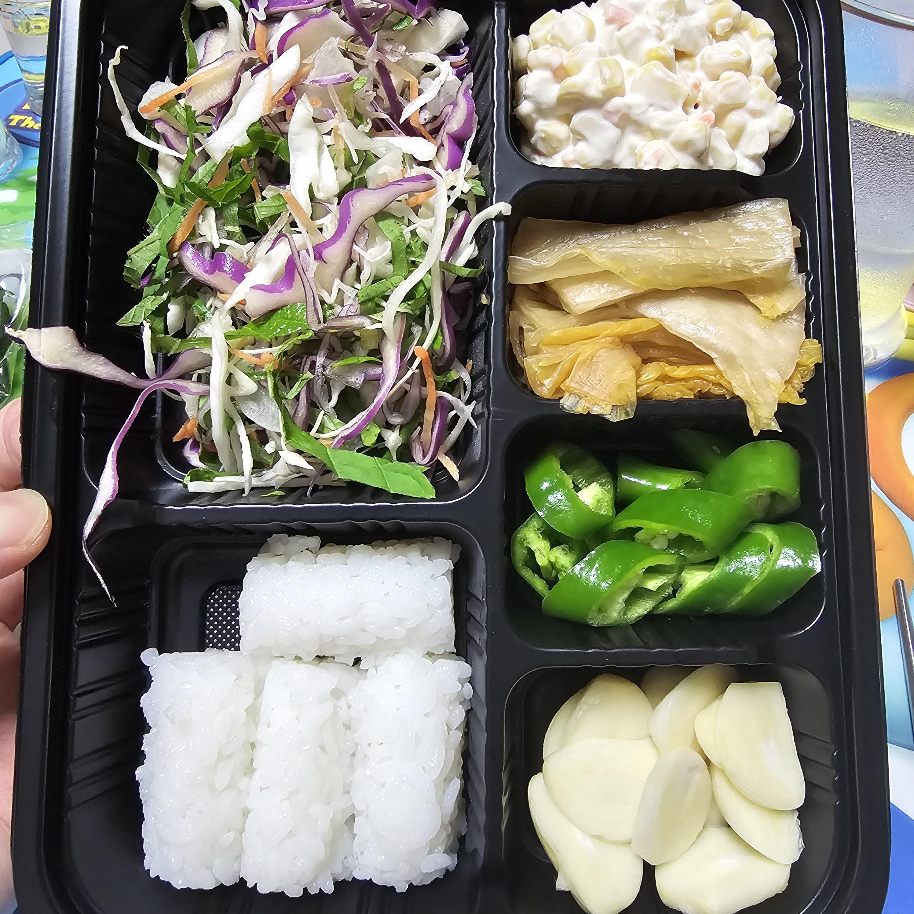 쌈채소도 깨끗히 씻어서 이렇게 포장해 줍니다. 찝찝한 사람은 한번 더 헹궈서 드시면 되는데, 우리는 쿨하니까 그냥 먹습니다.