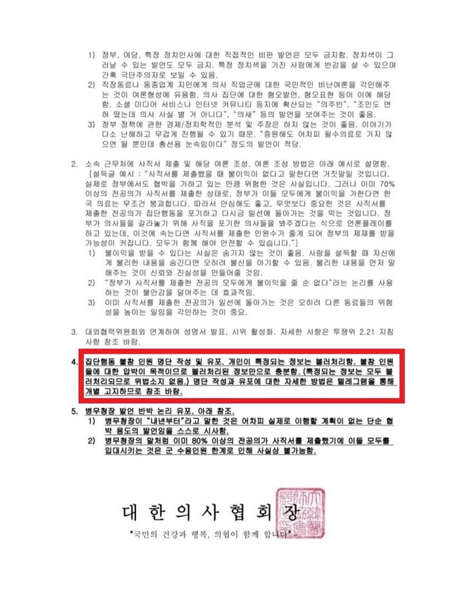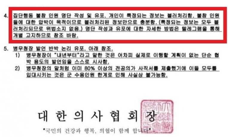 의사 관련 커뮤니티에 올린 글에 파업에 동참하지 않는 전공의들의 개인 신상정보가 노출된 문제에서, 문제는 과연 이러한 문서를 누가? 왜? 작성했느냐입니다. 이것이 의사협회의 지시냐 아니냐 하는 부분에 대해 본격적인 수사와 논란이 일어나고 있습니다. 아래 글은 3월 7일 밤 디시인사이드에 올라온 글입니다.