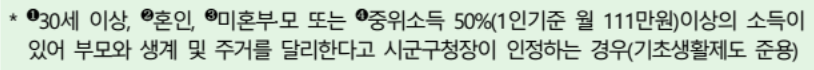 - *30세 이상이거나 혼인 등 부모와 생계 및 주거를 달리하는 것으로 보이는 청년은 본인가구 소득 재산만 확인한다.