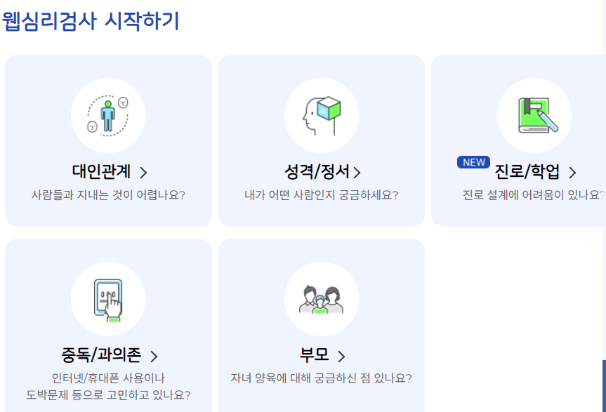 - 웹심리검사를 통해서 자기 자신에 대해 잘 알 수 있고 문제해결에 도움을 받을 수 있다.