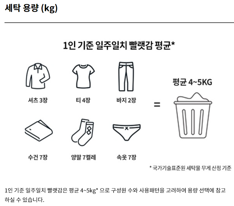 - 세탁용량 및 건조용량 : 25kg(세탁) / 13kg(건조) / 4kg(미니워시)