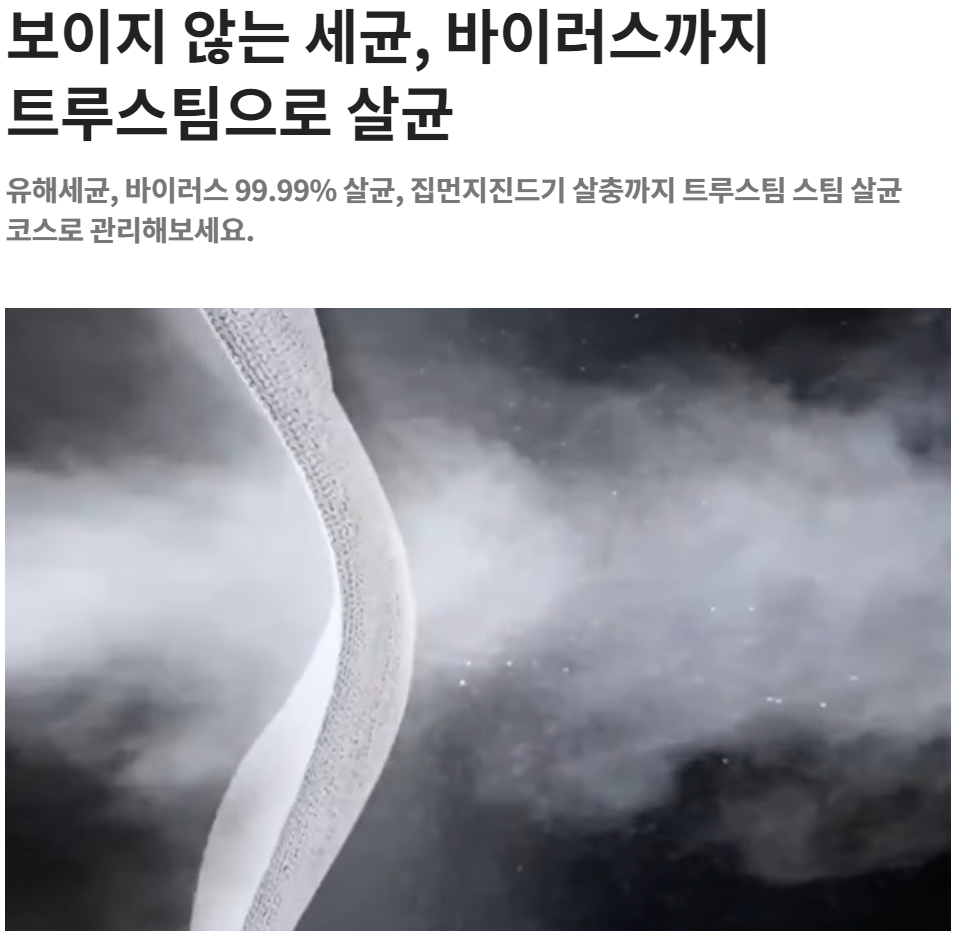 *100도 C 트루스팀으로 유해세균 바이러스까지 살균할 수 있습니다.