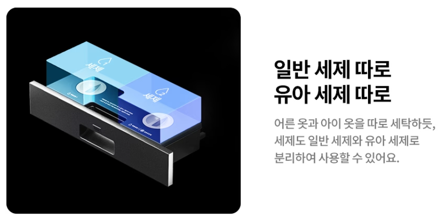 *자동세제함 플러스로 세제와 유연제를 따로 넣어놓으면 알아서 투입해 줍니다.